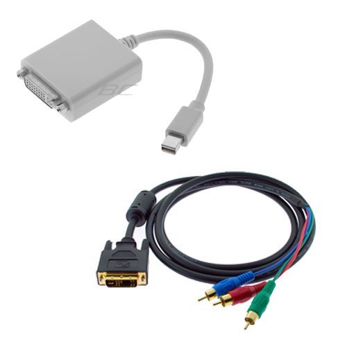Mini DisplayPort Male to DVI-D Female Adapter: Brand new high quality generic adapter. Support Mini DisplayPort 1.1a input and DVI output Support DVI highest video resolution 1080p Support DVI 225MHz/2.25Gbps per channel (6.75Gbps all channel) bandwidth Support DVI 12bit per channel (36bit all channel) deep color Powered from Mini DisplayPort source Connectors: Mini DisplayPort Male to DVI-D Female. 6ft. 3-RCA Component RGB to DVI - I Gold Plated Cable M/M: Brand new high quality generic cable. Length: 6 Feet Connectors: 3-RCA Male to DVI-I Male. Gold plated RCA plugs to improve conductivity. Fully molded construction. Excellent quality. Triple heavy-duty super shielded RG-59/U cables to maximum signal transfer and minimize interference. UPC Code:088515723409 Readmore .. .